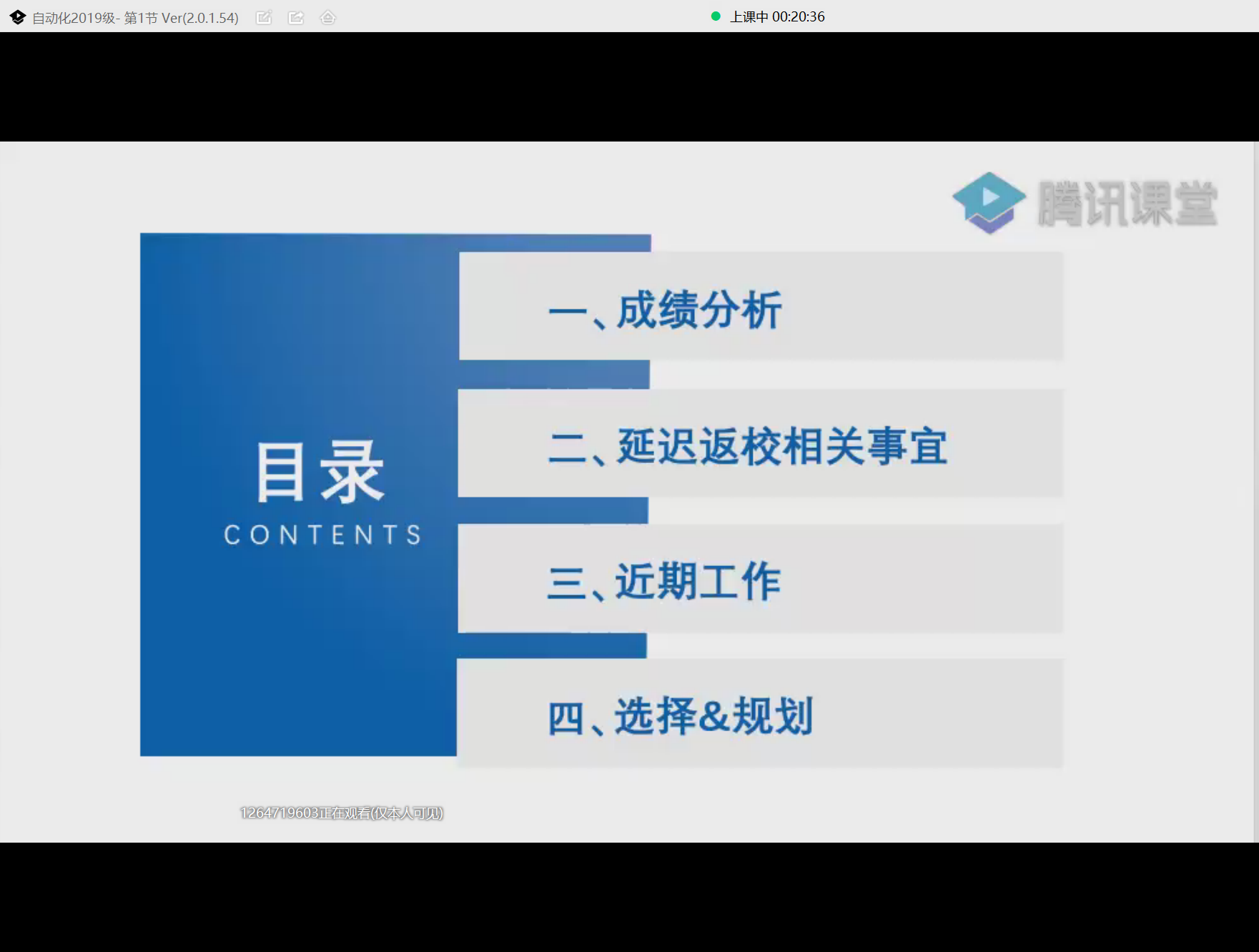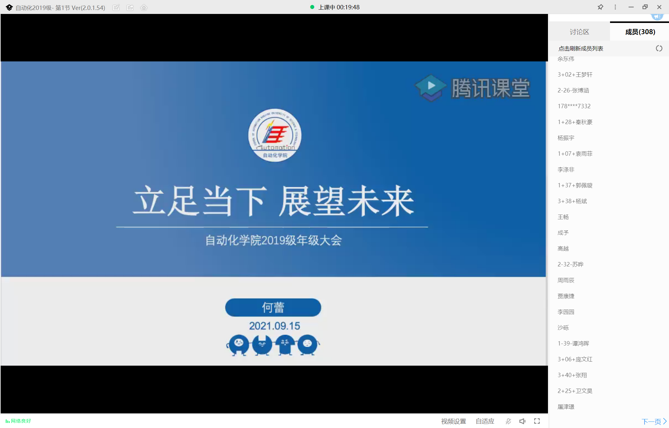 为引导同学们更好地进入大三生活,9月15日下午,自动化学院2019级在线召开了主题为“立足当下,展望未来”的年级大会。会议由辅导员何蕾主持,全体2019级学生参会。