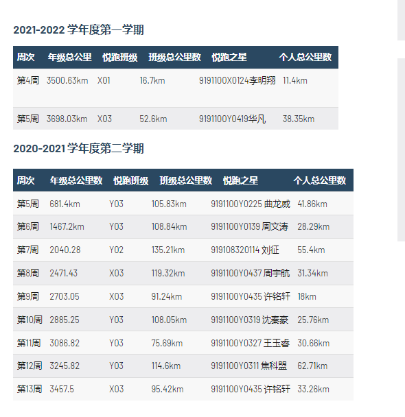 在计划启动的一个学期里,全体2019级同学共同参与,在跑步中挥洒汗水、锻炼身体,累计跑步距离达3465km。各班级都积极参与“悦跑计划”,X03班以总体距离770km的成绩夺取了学期“健跑班级”称号,许铭轩同学以累计距离147.96km被评为“健跑达人”。