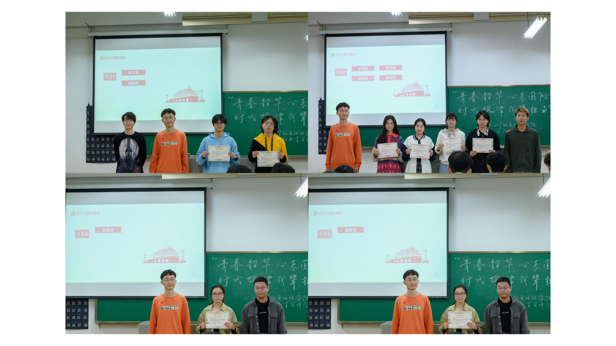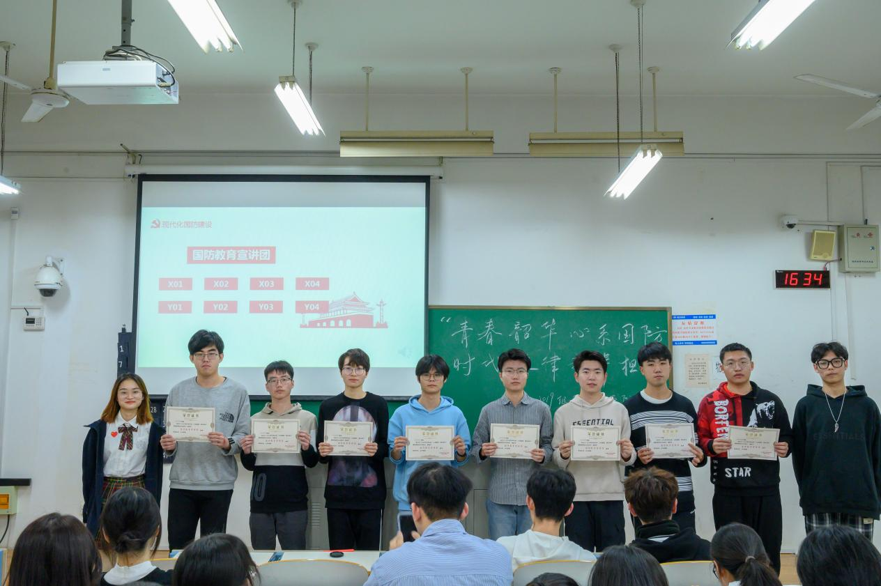 最后,年级团总支书记丁依静、团总支副书记余东伟为30位国防教育宣讲员授予徽章并为宣讲员和宣讲团颁发奖状。