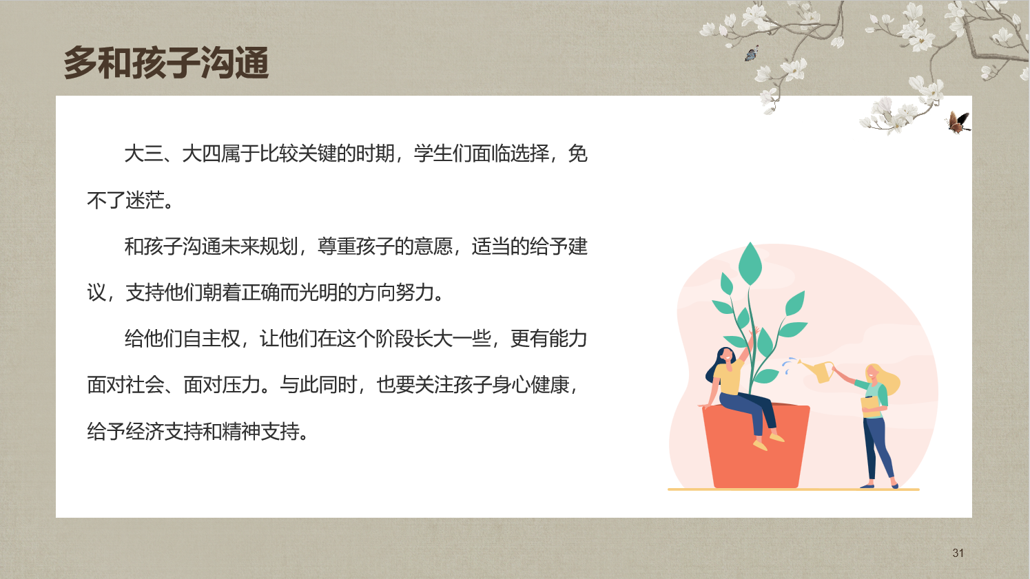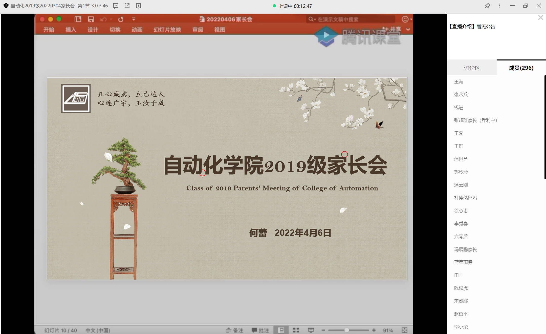 本次家长会在大三关键时期成功召开,帮助家长更好地了解学生的学业状况和毕业方向,从家长方面助力学生顺利毕业。相信在年级和家长的密切配合下,自动化学院2019级全体学生都能够在大三做好关键的人生抉择,奔赴各自不同的美好人生。